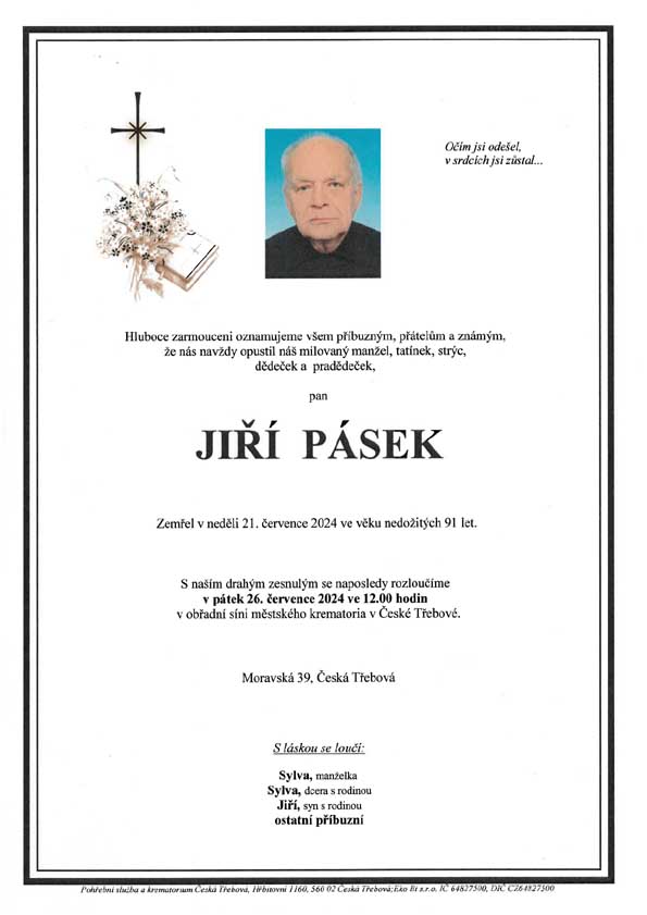 Je třeba také připomenout spojení Jiřího Páska a fotbalového klubu, pro který byl nepostradatelným např. při zajištění kronikářské práce (úlohu kronikáře zdědil po Josefu Zemanovi) a zejména při přípravě oslav 100. výročí českotřebovského fotbalu v roce 2008, které se stalo událostí celého města. Za svou práci pro město byl Jiří Pásek oceněn udělením ceny starosty města. Mnoho hodin společné práce jsem s Jiřím Páskem strávil při přípravě knihy o fotbalovém století 1908 - 2008, vím jakým byl poctivým spolupracovníkem, jak se na stará kolena učil bojovat s počítačem a jeho záludnostmi. S Jiřím Páskem jsem absolvoval několik rozhovorů, které jsou stále k dispozici ve virtuálním prostoru na webu Českotřebovského deníku. Nyní si je můžeme znovu připomenout. Je v nich shrnuto snad všechno o jeho životě, rodině zaměstnání, veřejném působení na českotřebovské radnici i ve fotbalovém klubu. Trvalou mravenčí práci vykonával Jiří Pásek také jako předseda Fotbalového oddílu TJ Lokomotiva, pamětní dodnes obdivují jeho organizátorské schopnosti Během jeho dvanáctiletého působení na českotřebovské radnici v letech 1991 - 2002, z toho poslední 4 roky ve funkci starosty města, mám na discích v počítači spousty fotografií, které nyní uvedu a které mohou připomenout dnes již zapomenutou dobu 90. let, ve které však vzniklo mnoho z toho co je dnes samozřejmostí. pro pochopení bude třeba k fotografiím uvést alespoň krátké texty. Považuji znovu za důležité napsat, že u všeho toho byl Jiří Pásek..... Měl jsem štěstí a mohl jsem být být také s přáteli ze staré gardy českotřebovského fotbalu Ádou Ptáčkem a Jiřím Dejmkem přítomen loni při oslavě devadesátin. Ověřil jsem si, že jeho vzpomínky se skutečně točí především kolem dění v českotřebovském fotbalu. Ale připomínal si mnohé události spojené s úřadováním v roli starosty města, kdy spojenými silami ve vedení města dokázali vyřešit mnohé zapeklité problémy. Chystal jsem se letos na další narozeninovou návštěvu, která se již ale neuskuteční. Oceňme Jiřího Páska jako člověka, který byl skutečným Třebovákem, měl rád svoje město a dokázal pro něho dělat ze všech svých sil. Čest jeho památce ! Milan Mikolecký - fotografie, které mám nejčerstvější jsou z loňské oslavy devadesátin 31.7. 2023