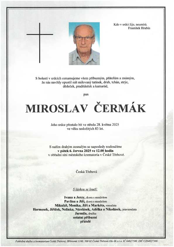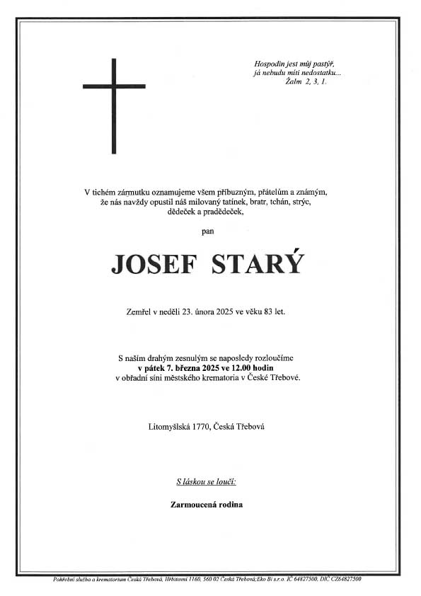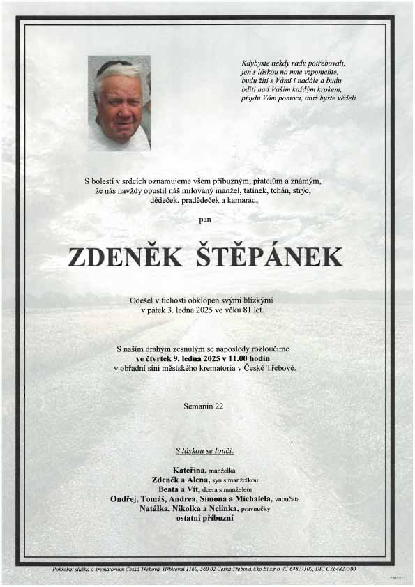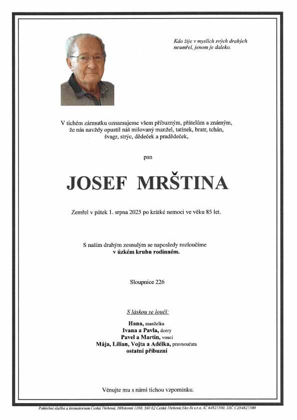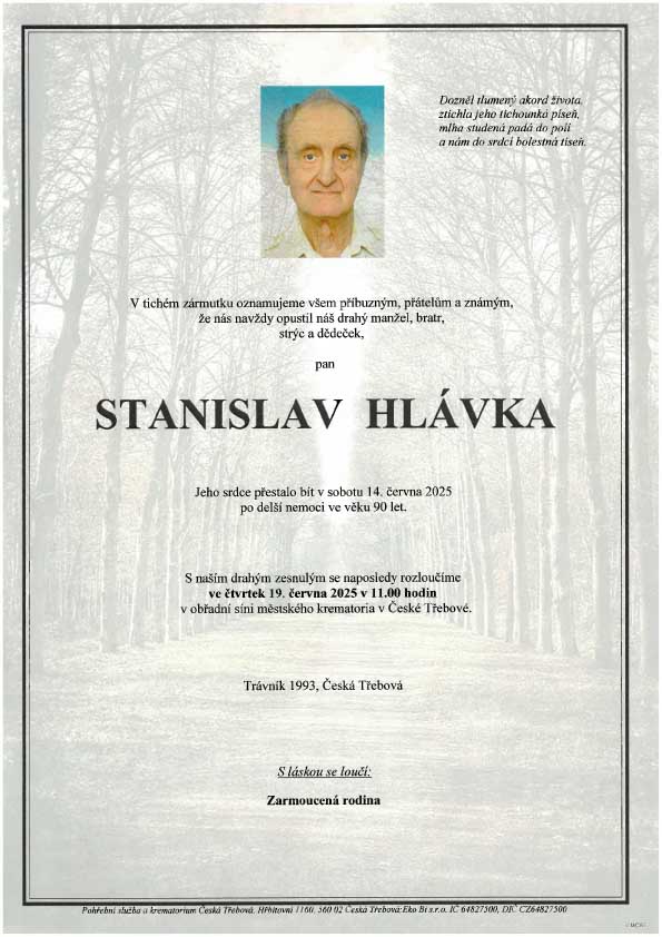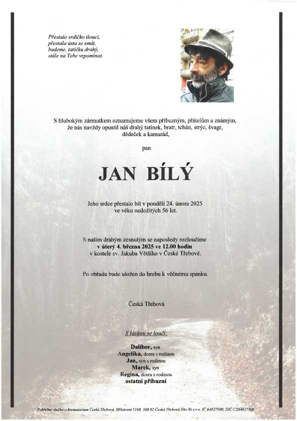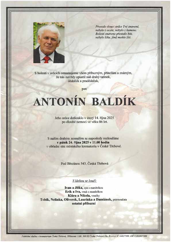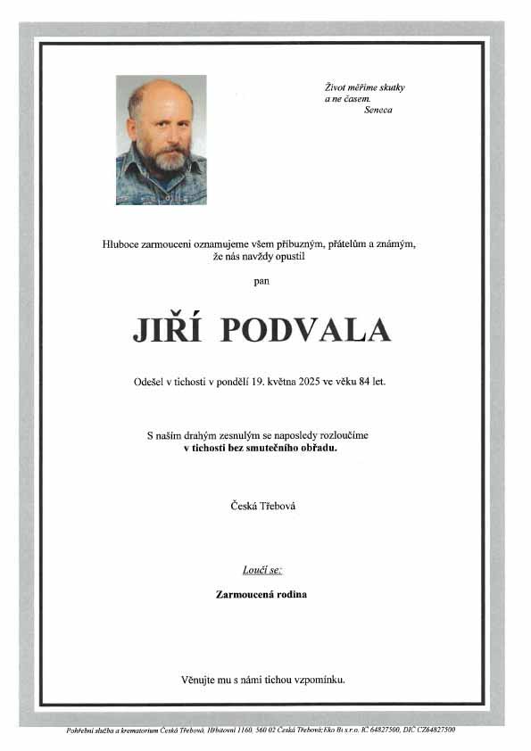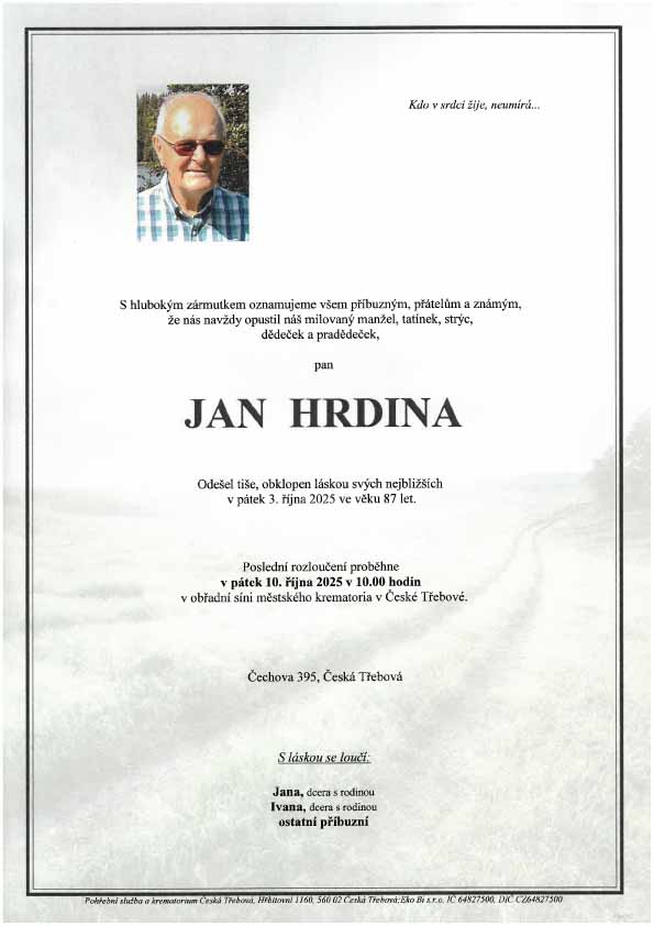 - Jan Hrdina, 87 let, Česká Třebová Čechova