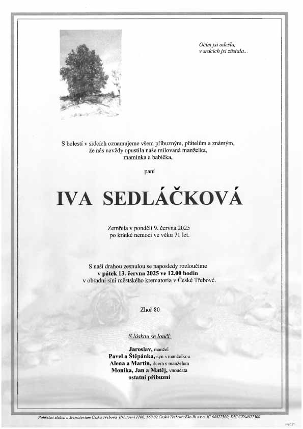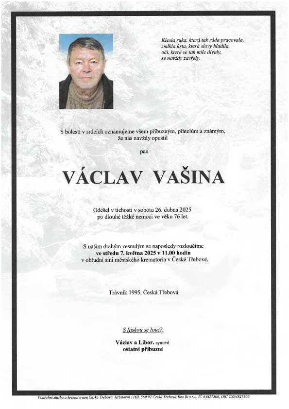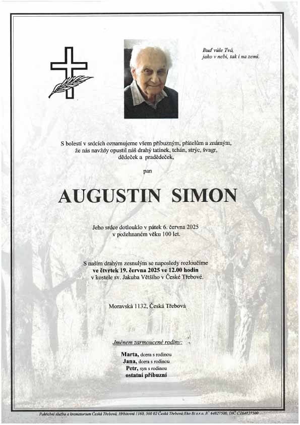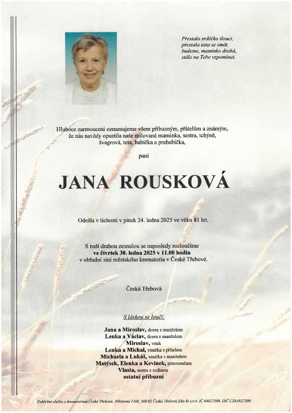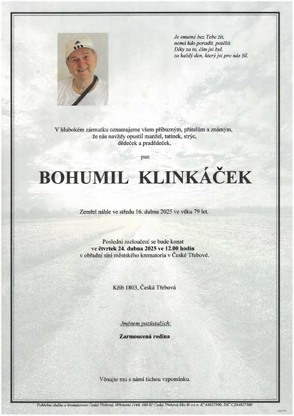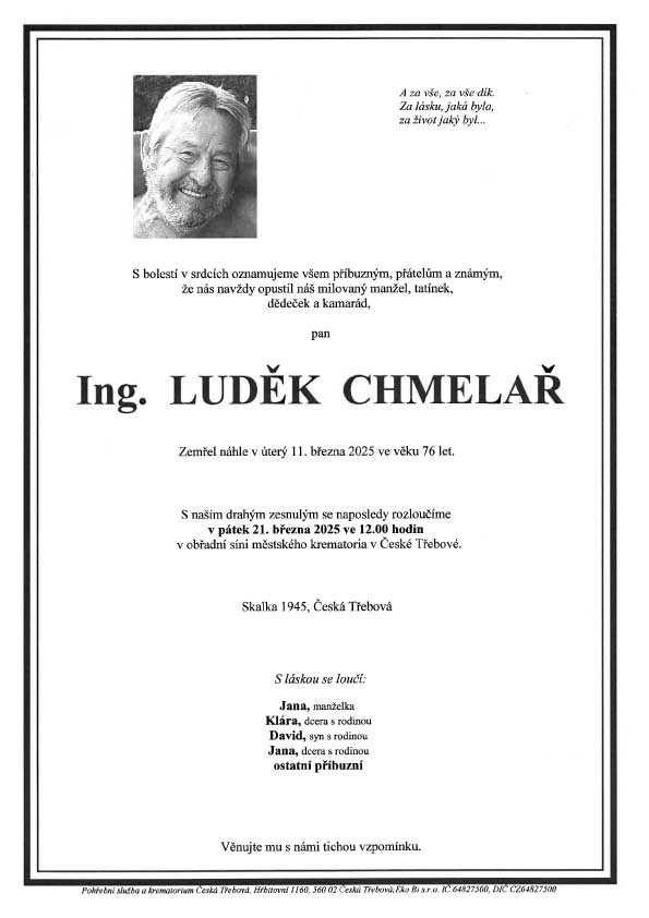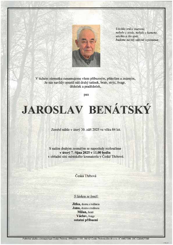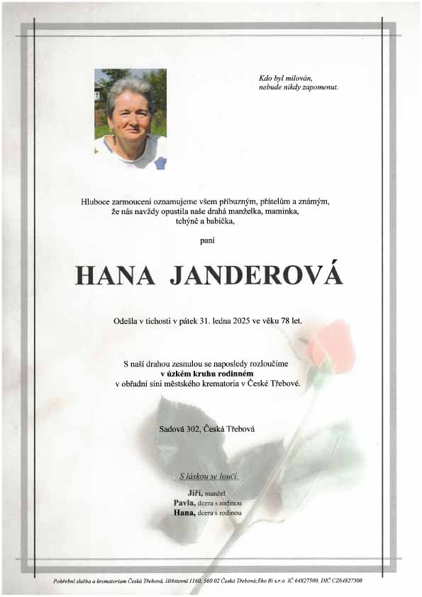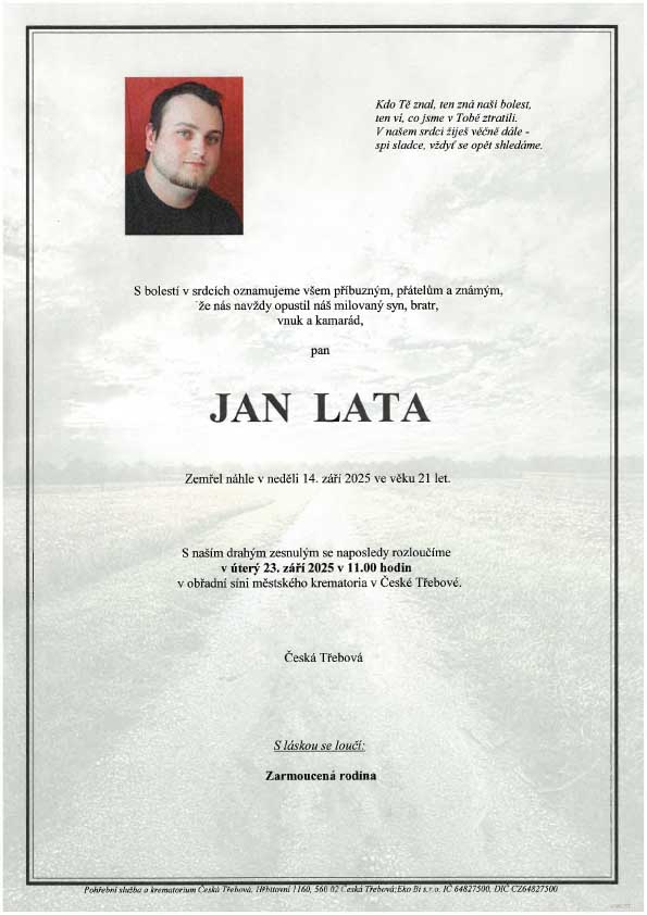 - Jan Hrdina, 87 let, Česká Třebová Čechova