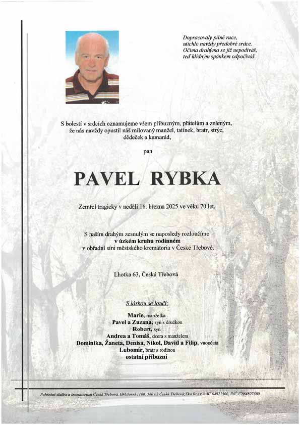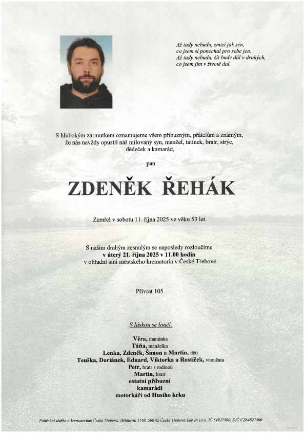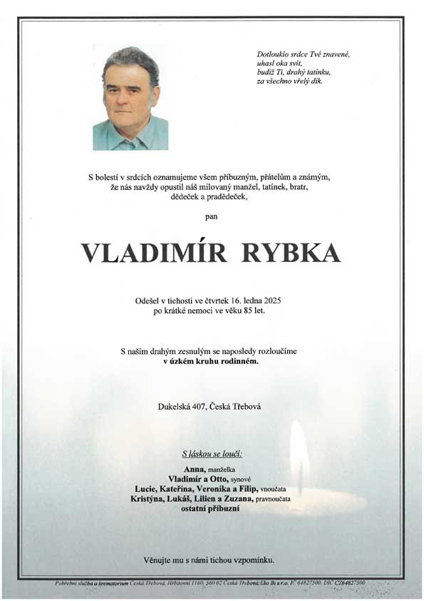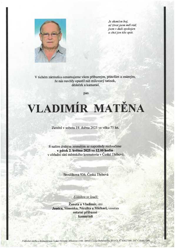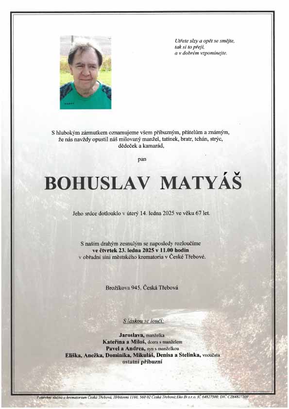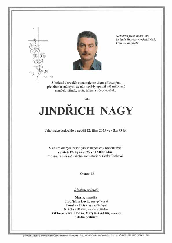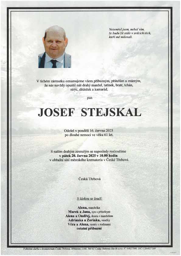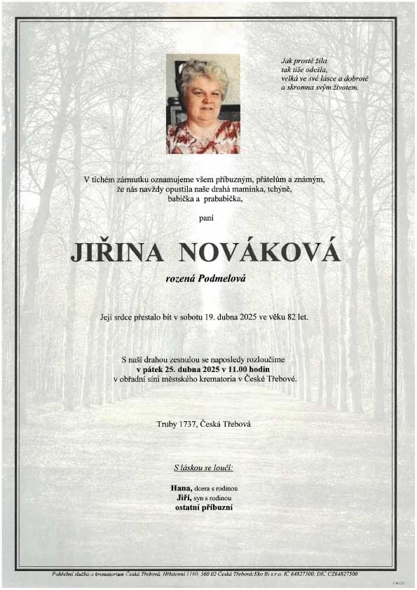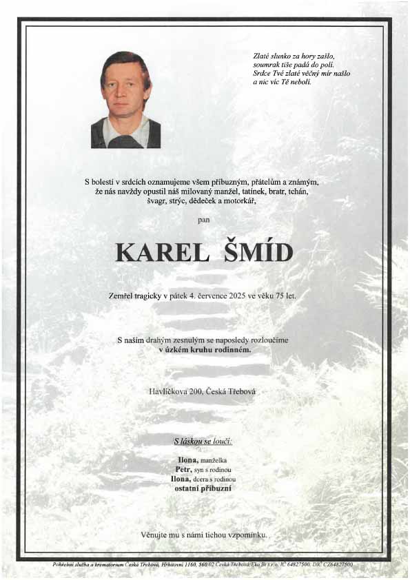 - Jan Hrdina, 87 let, Česká Třebová Čechova