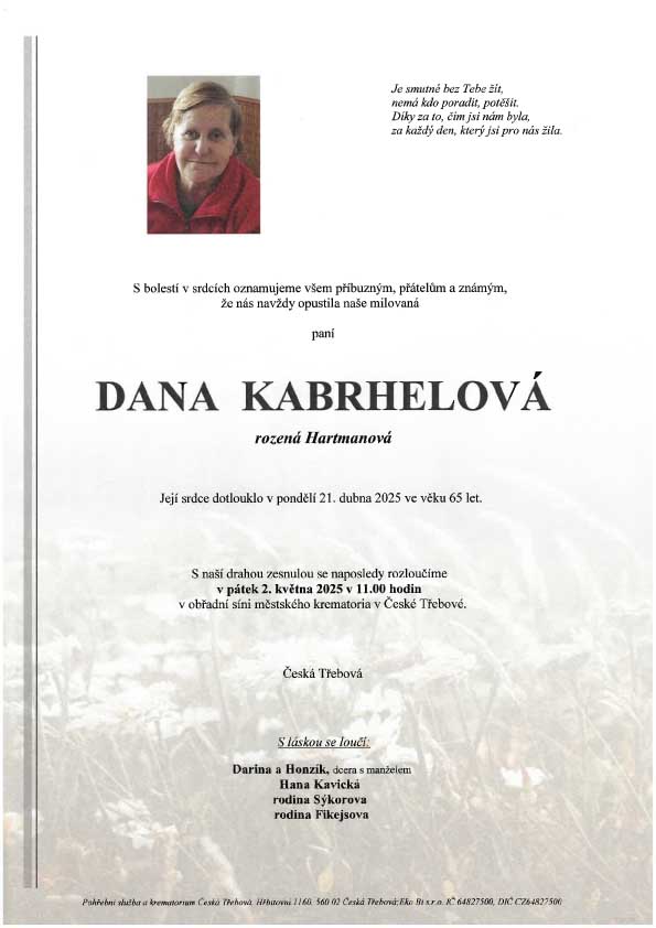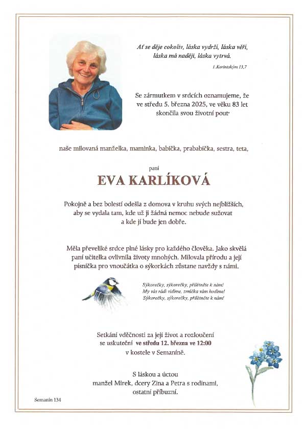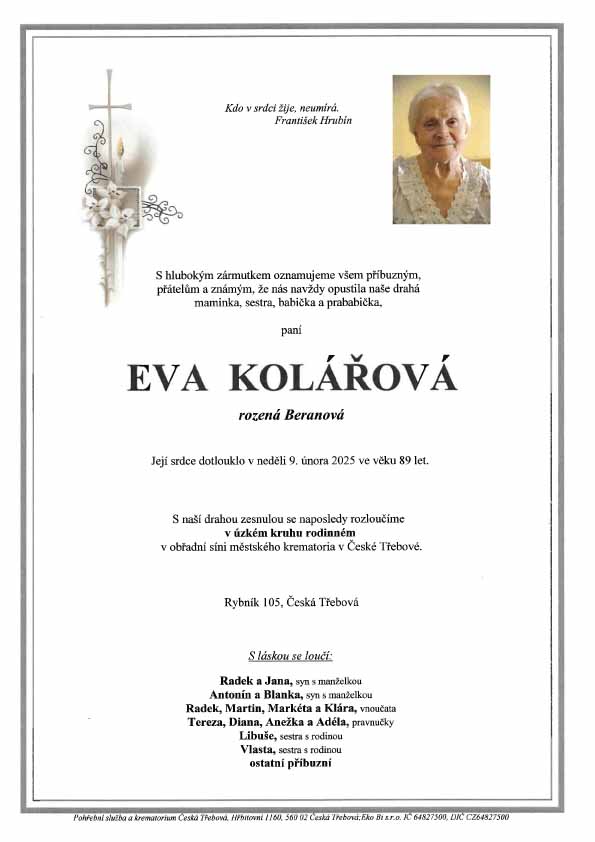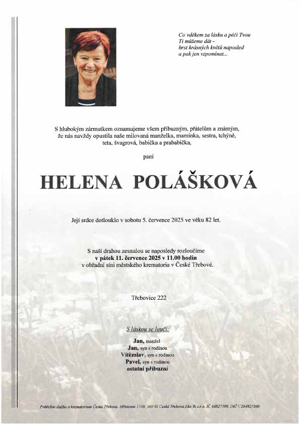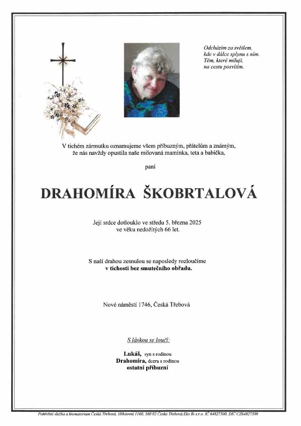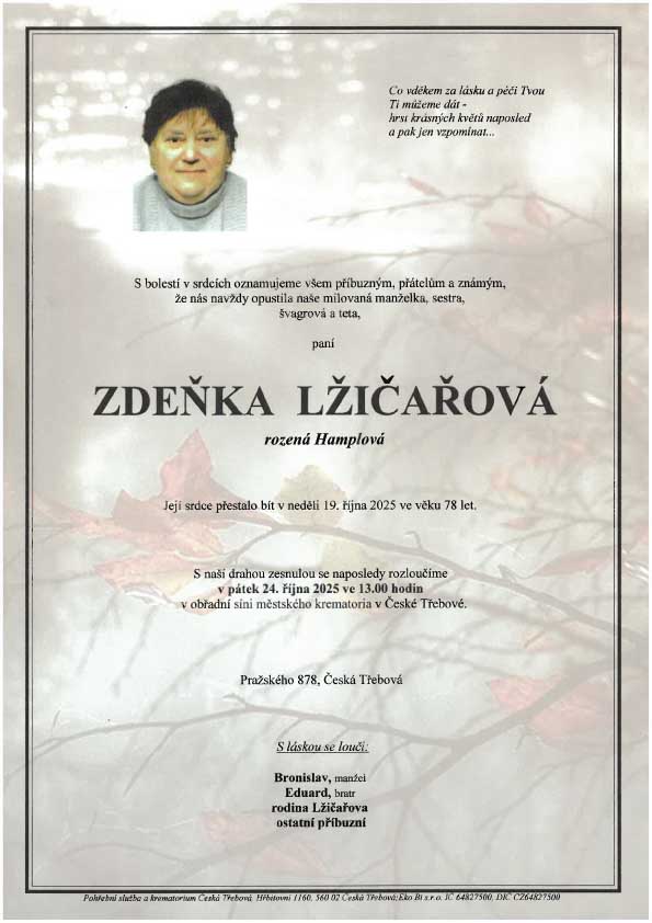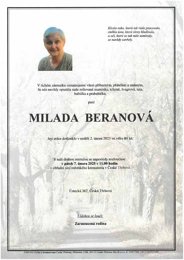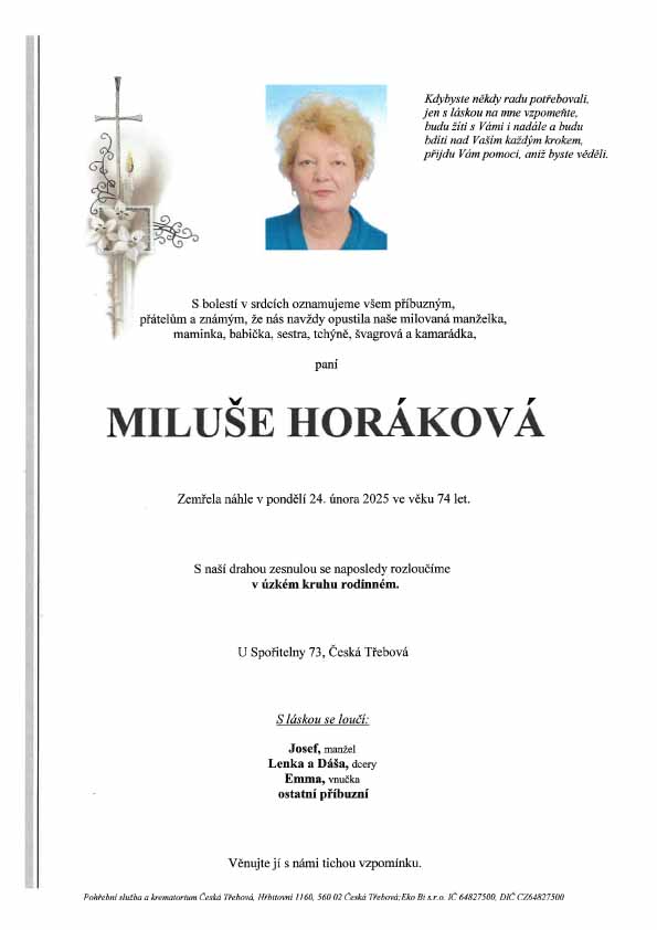 Stanislava Siková, roz. Bělková, 82 let Lhotka 54 Česká třebová