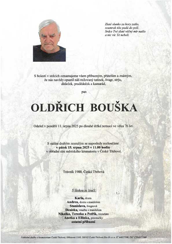 Bouška Oldřich, 76 let Česká Třebová Trávník