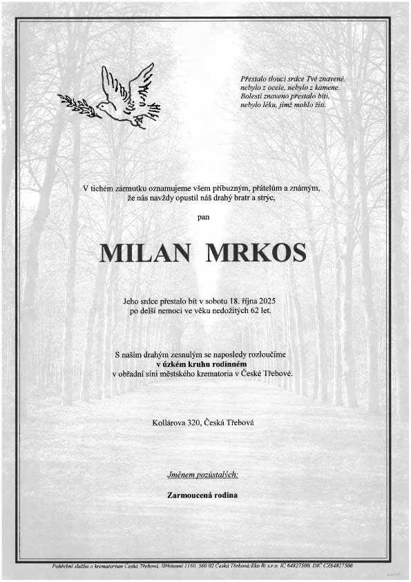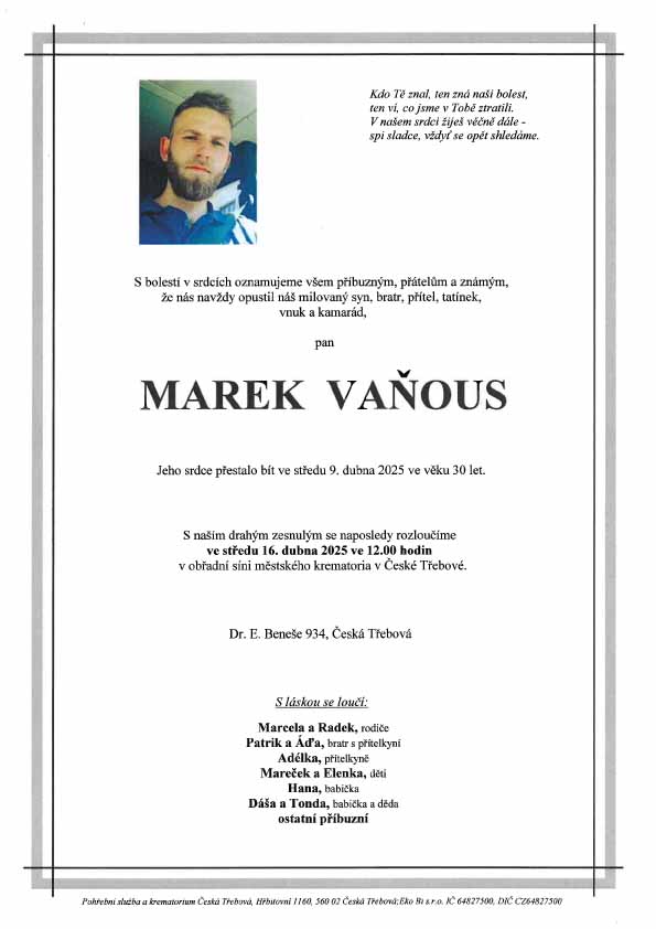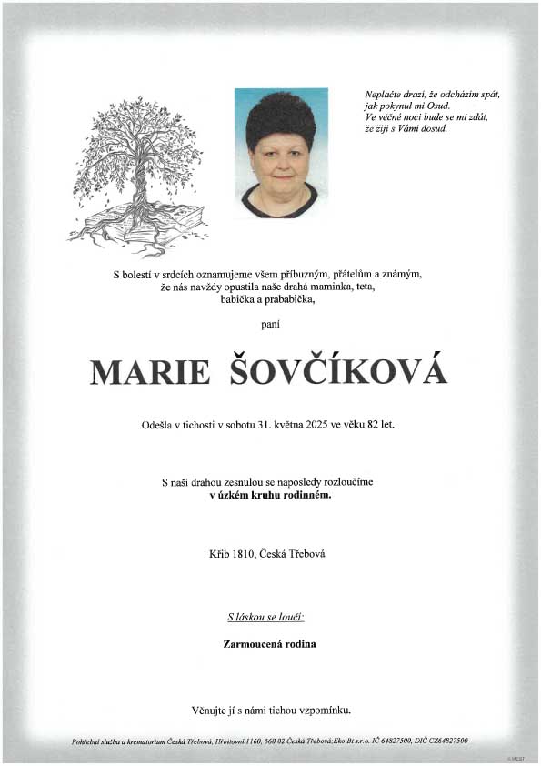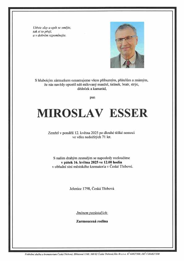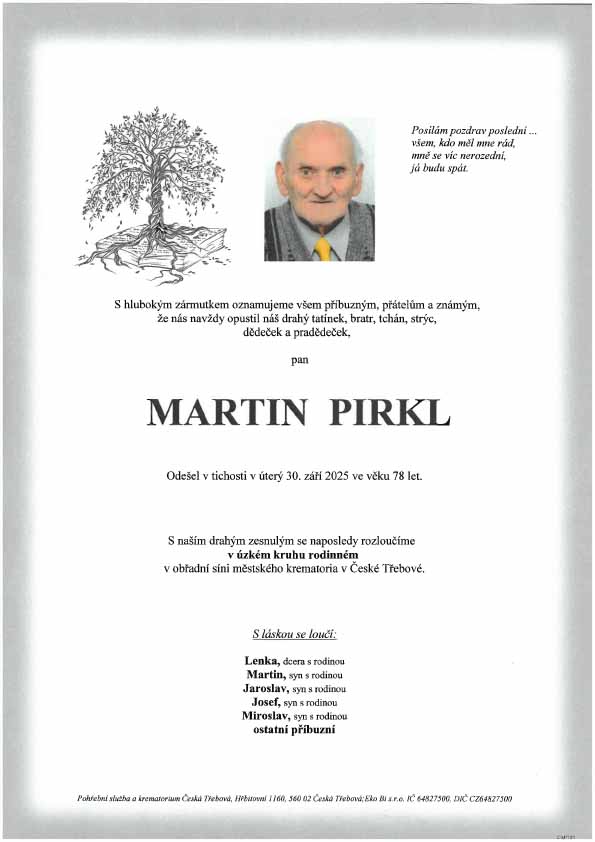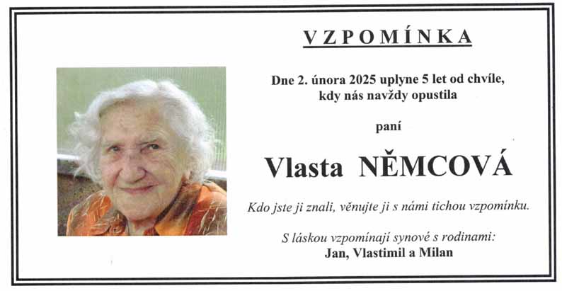 zašlete podklady, bude vzpomínka zveřejněna na dobu cca 1 měsíce. E-mailová adresa na zasílání podkladů pro vzpomínky je mikolecky@probit.cz.
