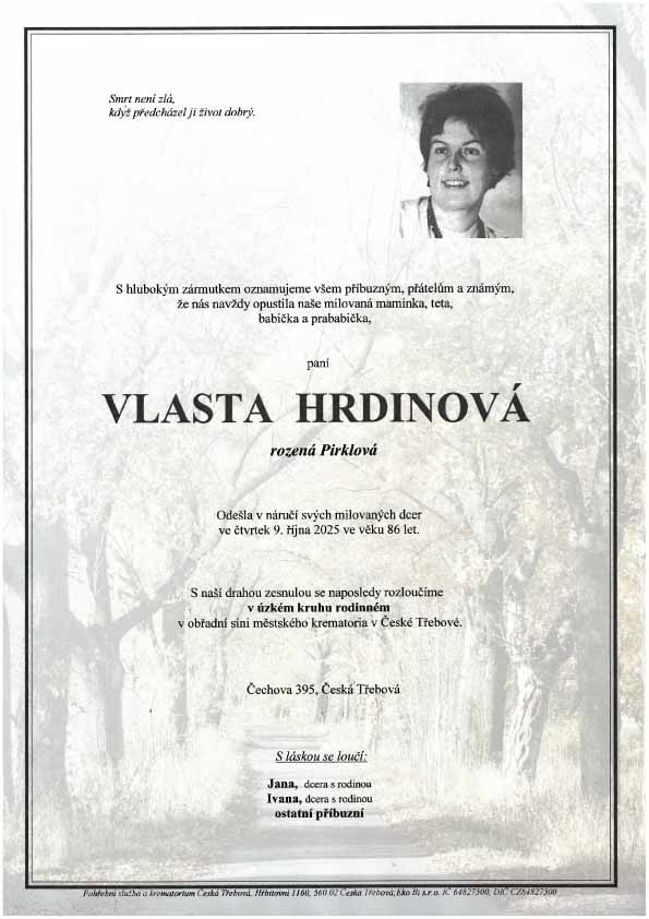 - Vlasta Hrdinová, 86 let Česká Třebová,